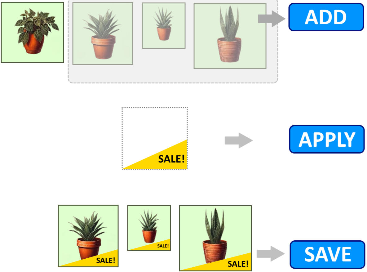 Dynamic Overlays: Use variables (like dates, inventory counts, or personalized messaging), with overlays automatically updating as needed.